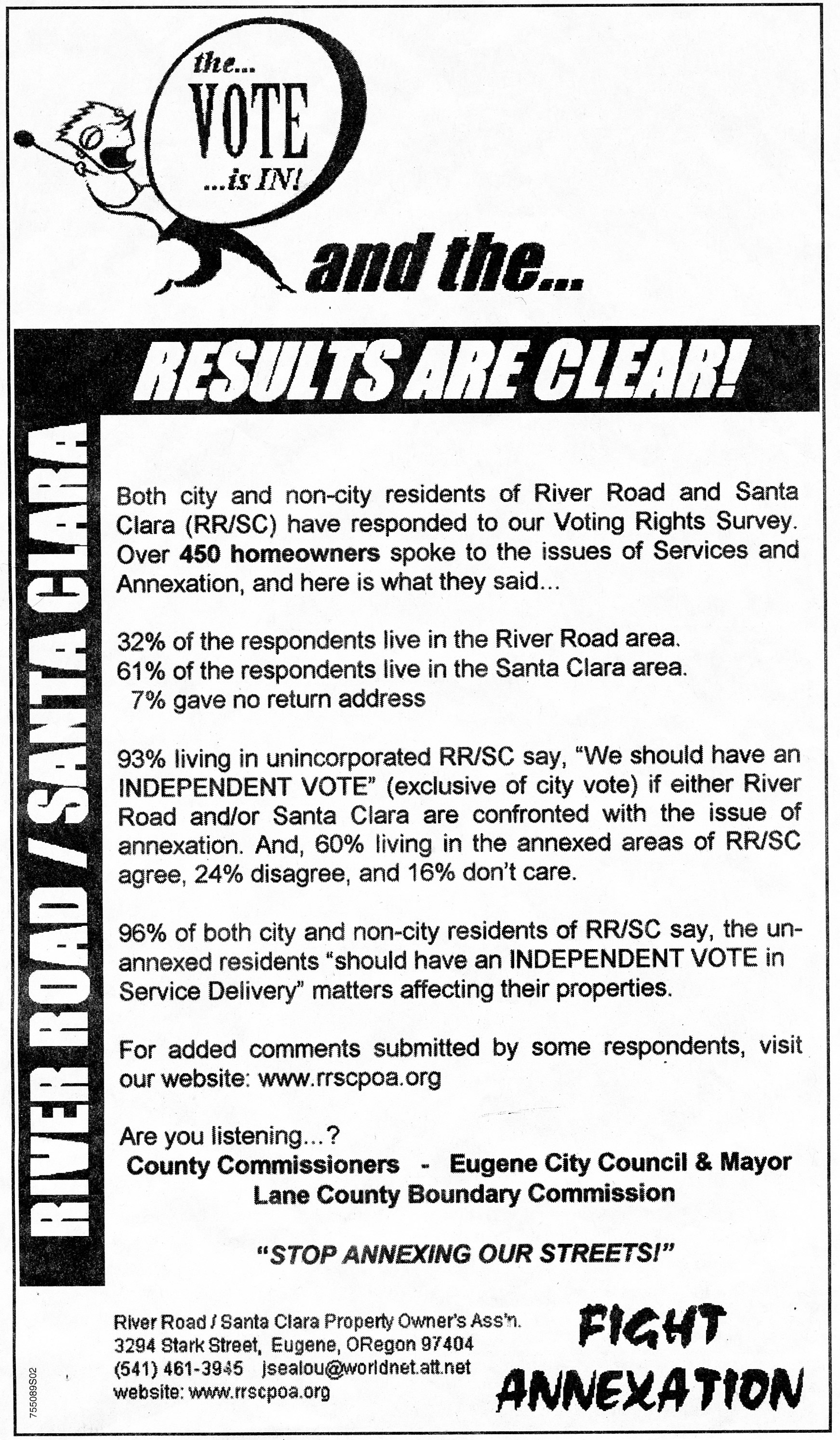 River Road/Santa Clara Property Owner's Association Anti-Annexation Ad from around 1998